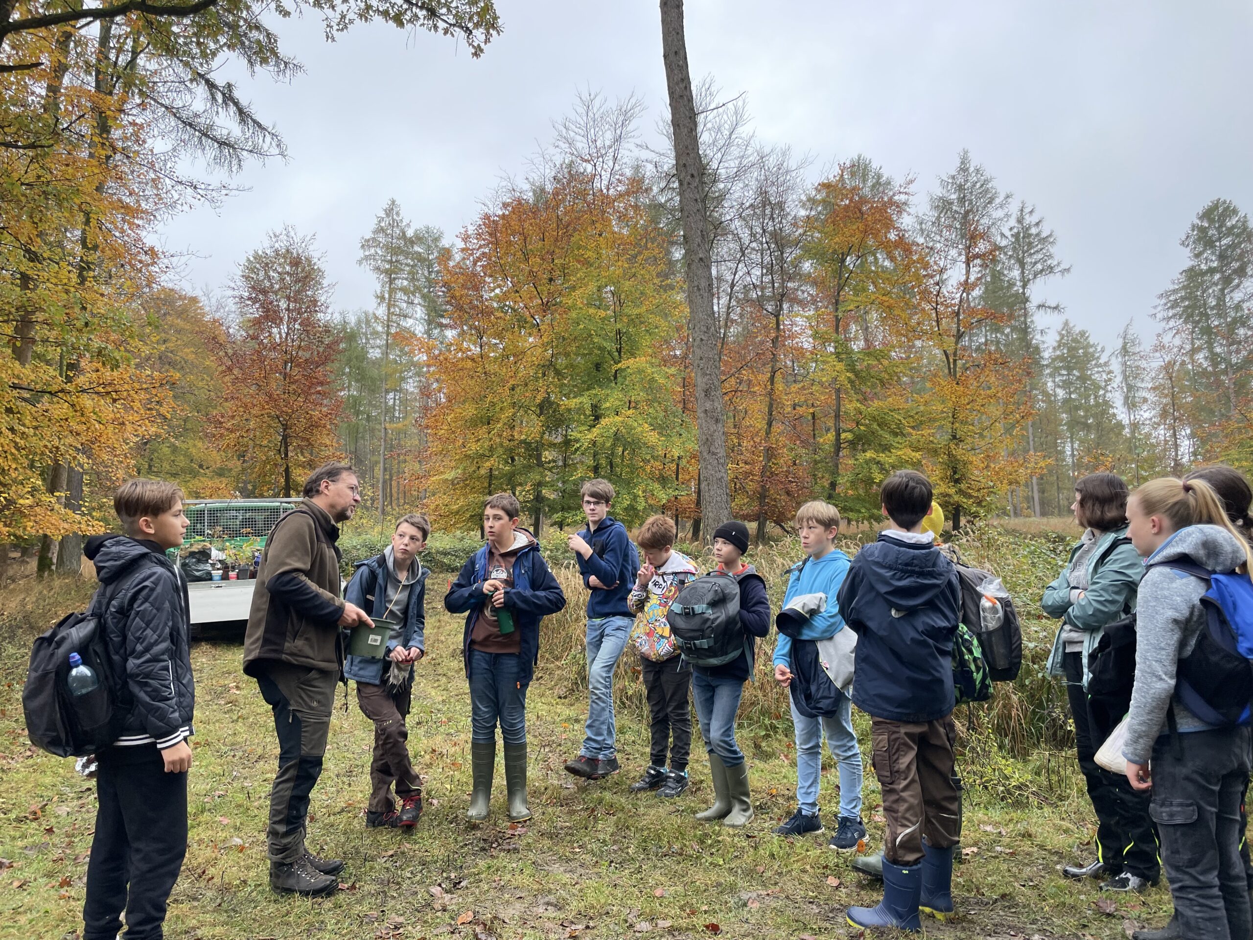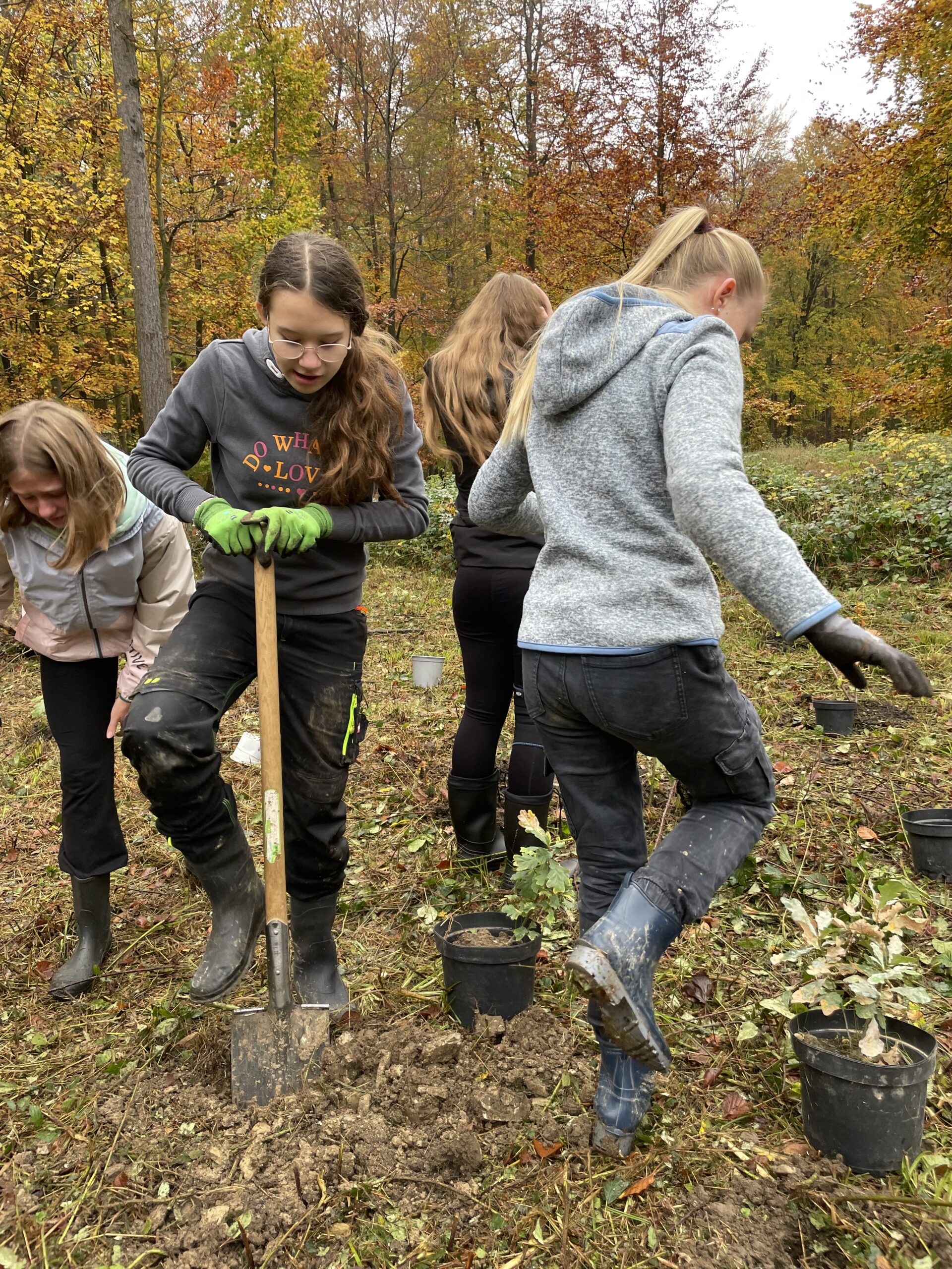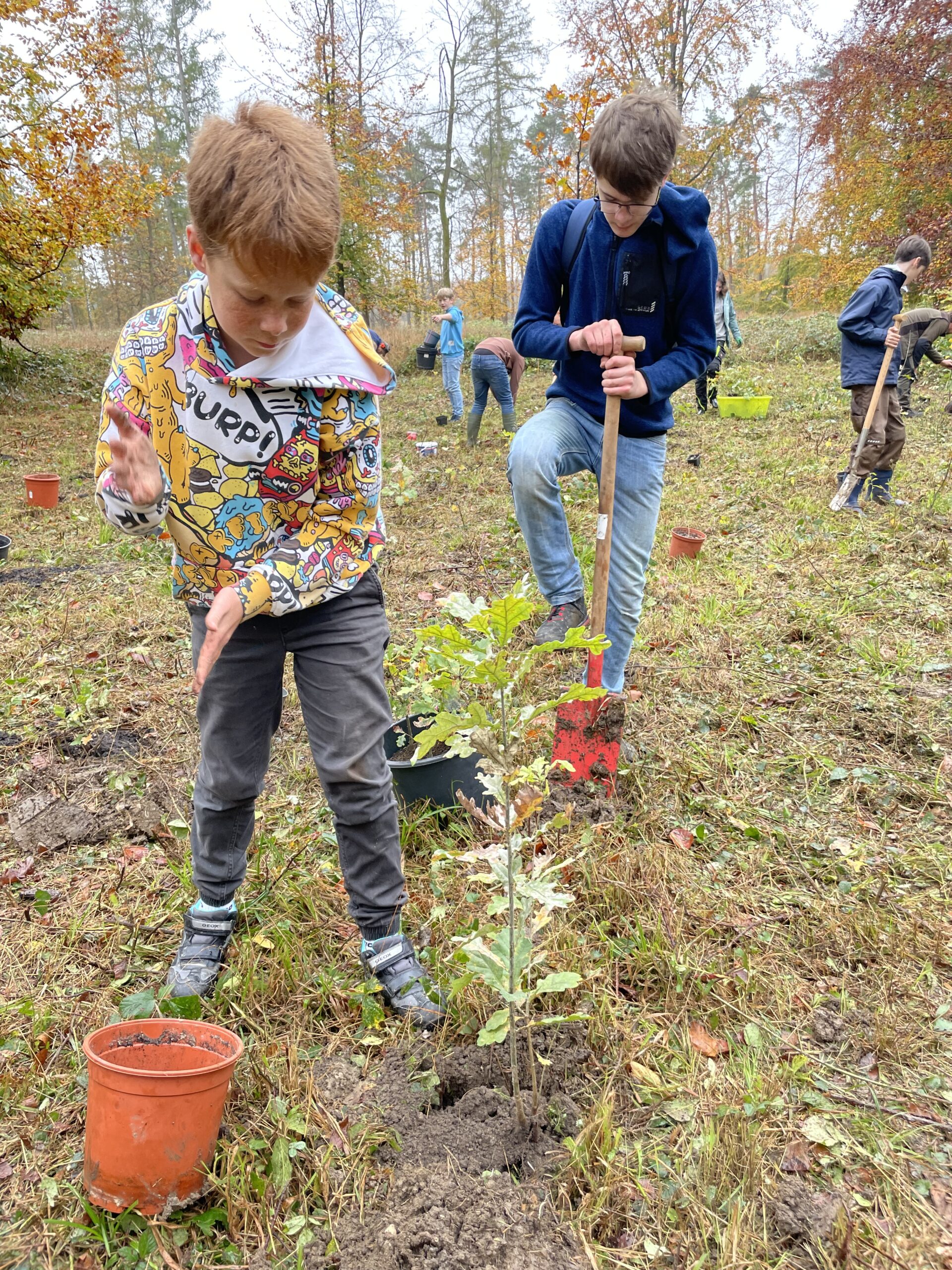 Von oben trocken und von unten nass: Bei idealen Wetter- und Bodenbedingungen haben die Schülerinnen und Schüler der 7Rb gemeinsam mit ihrem Klassenleitungsteam Annette Karweg und Simon Titz das Projekt „Die Brede pflanzt einen Wald“ zum Abschluss gebracht und über 350 kleine Bäumchen in die Erde gesetzt. Die Pflanzaktion bildete das Finale eines gut zweijährigen Nachhaltigkeitsprojekts unserer Schule gemeinsam mit dem Stadtförster Harald Gläser.