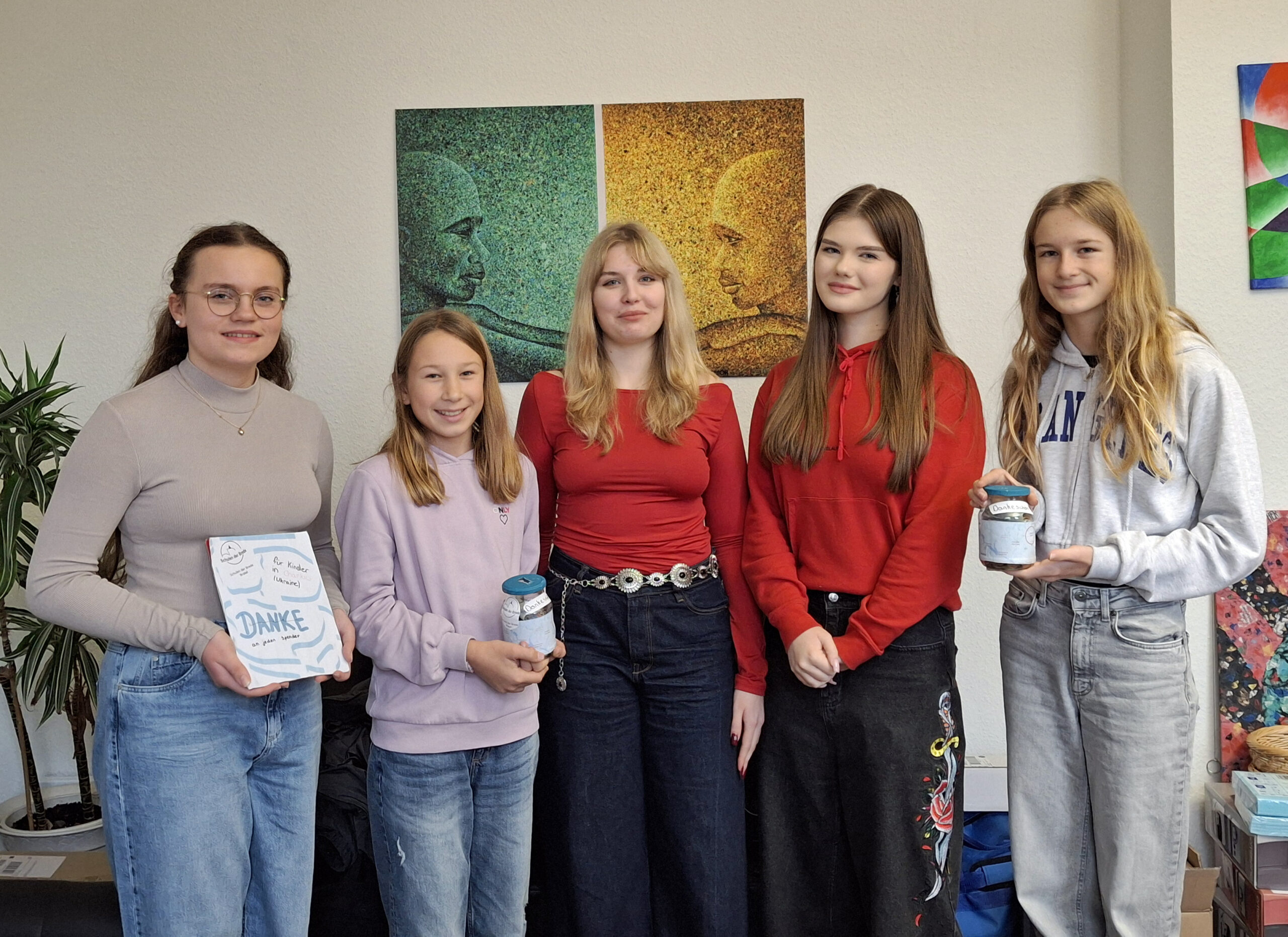 In der Erweiterungsstunde „Nachhaltigkeit“ haben die drei Schülerinnen Liv, Leonie und Zoe der Schulen der Brede in Brakel eine Spendenaktion für die Kinder in Charkiw (Ukraine) organisiert. Einerseits haben sie jeweils eine Spendenbox bei den beiden Bäckereifilialen der Firma Engel in Brakel aufgestellt. Andererseits veranstalteten sie einen Kuchenverkauf an der Schule, bei dem auch einige ukrainische Schüler mitgeholfen haben. Die Aktionen führten insgesamt zu einem Erlös von 193,53 € (Spendenbox) und 315,00 € (Kuchenverkauf). Wir bedanken uns herzlich bei Bäckerei Engel, allen Spendern und Frau Sosna für ihre Unterstützung!