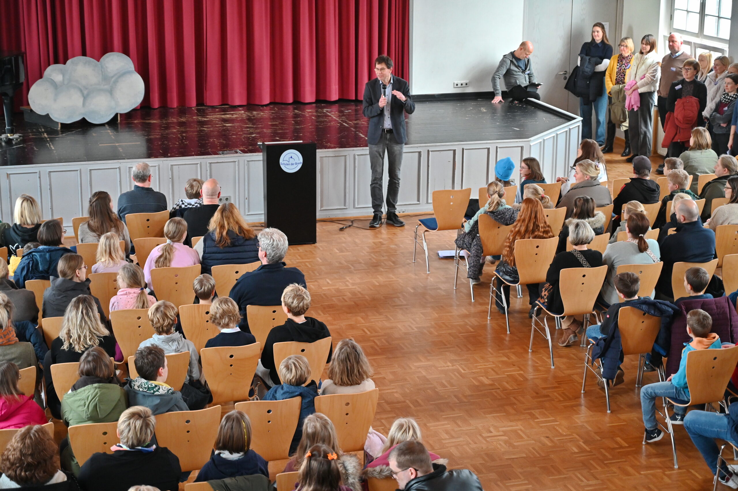 Nach einem gemeinsamen Einstieg in der Aula, in dem die Theater/Chor AG ihr Können zeigte, wurden die Kinder mit ihren Eltern in kleinen Gruppen, begleitet von Lehrkräften, durch alle Profilbereiche der Schule geführt. Das Schulgelände war erfüllt von neugierigen Fragen, spannenden Einblicken in MINT- und Sprachenunterrichte, musikalische, künstlerische und sportliche Angebote und Projekte sowie vielen persönlichen Gesprächen. Lehrkräfte, Mitarbeiterinnen und Mitarbeiter sowie zahlreiche Schülerinnen und Schüler haben mit großem Engagement gezeigt, was unseren Schulalltag ausmacht.