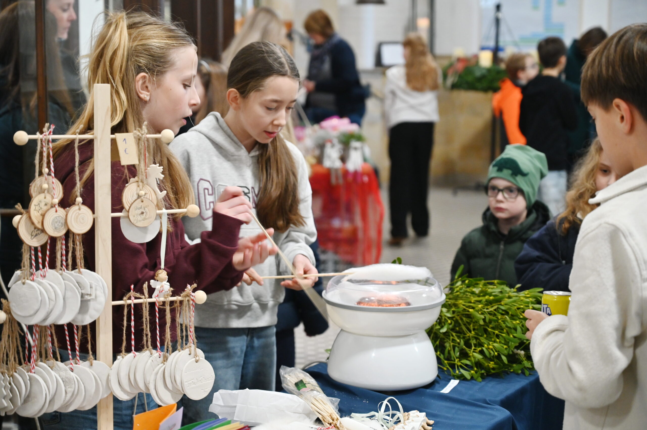 Die Klasse 6c hat zusätzlich mit ihrem wunderschön gestalteten Adventsmarkt, auf dem sie feines Selbstgebasteltes und Selbstgebackenes anbot, die adventliche Stimmung abgerundet. Die Erlöse werden einem guten Zweck zugeführt, über den wir später berichten werden.