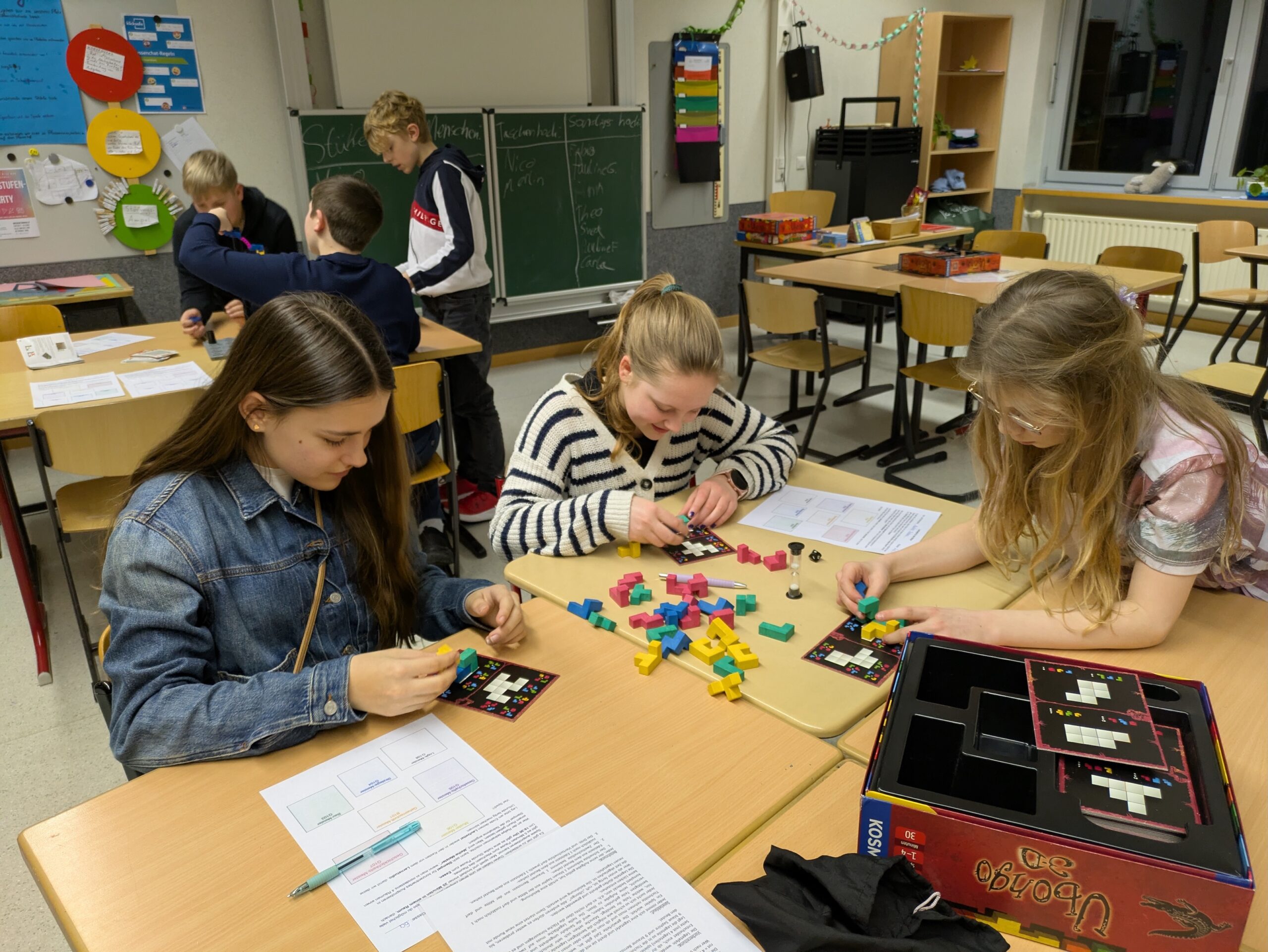 Unter der Aufsicht von neun engagierten Lehrkräften hatten die Schülerinnen und Schüler die Möglichkeit, ihr räumliches und logisches Denken unter Beweis zu stellen. Drei Stunden lang knobelten sie an kniffligen Aufgaben, rätselten über mathematische Probleme und setzten ihre kreativen Fähigkeiten beim Bauen und Spielen ein. Die Atmosphäre war von Begeisterung und Zusammenarbeit geprägt, aber auch von Spaß und guter Laune.
