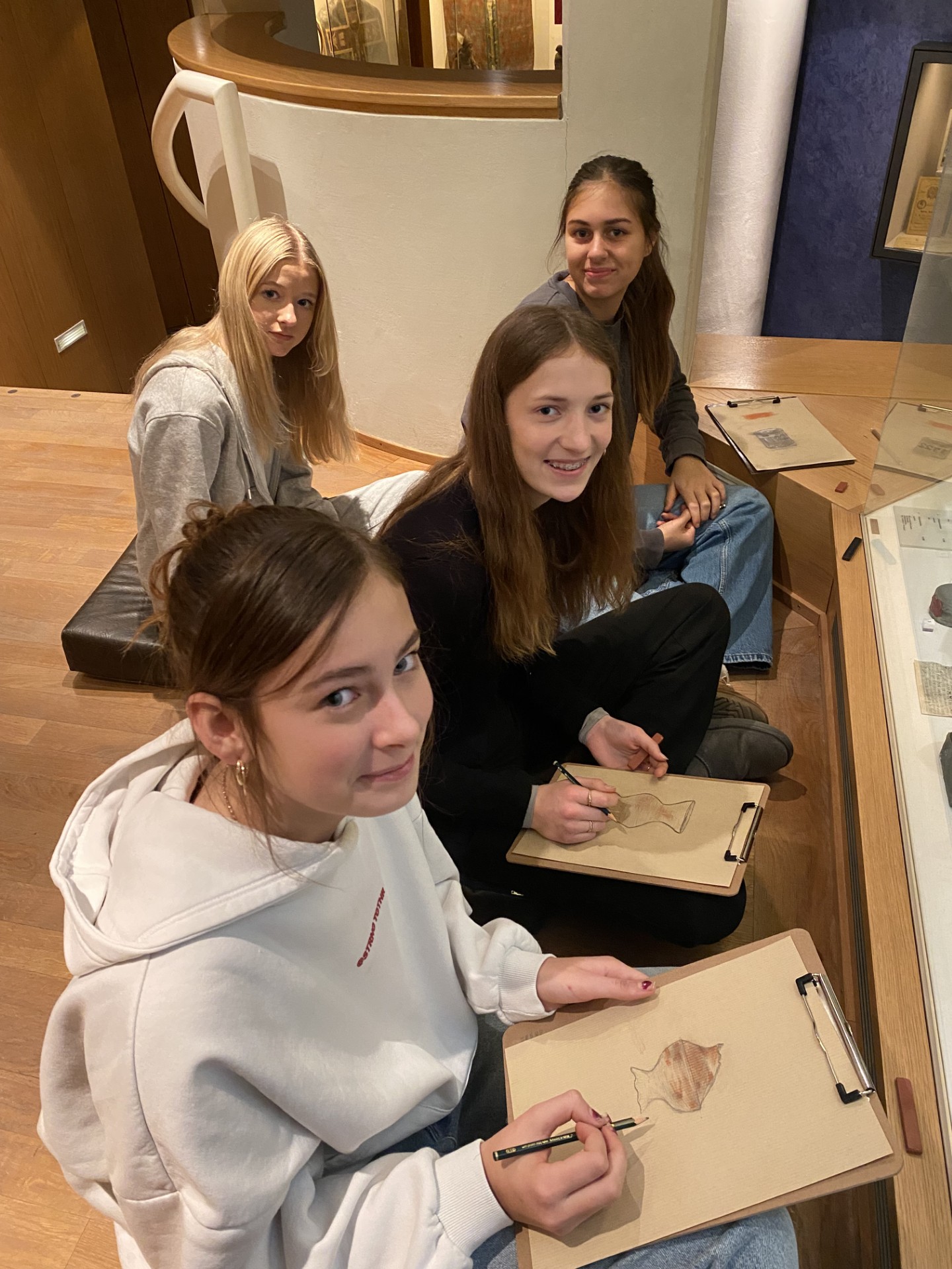 Die Schülerinnen und Schüler erlebten vor den Weihnachtsferien einen informativen und kreativen Museumstag. In der Schatzkammer entstanden tolle Zeichnungen und bei der Erkundung der neuen Sammlungspräsentation DIE HÄNDE ZUM HIMMEL entwickelten sich interessante Dialoge über die Bedeutung von Bildzeichen und Gesten von Emojis heute und Motiven in den Gemälden.
