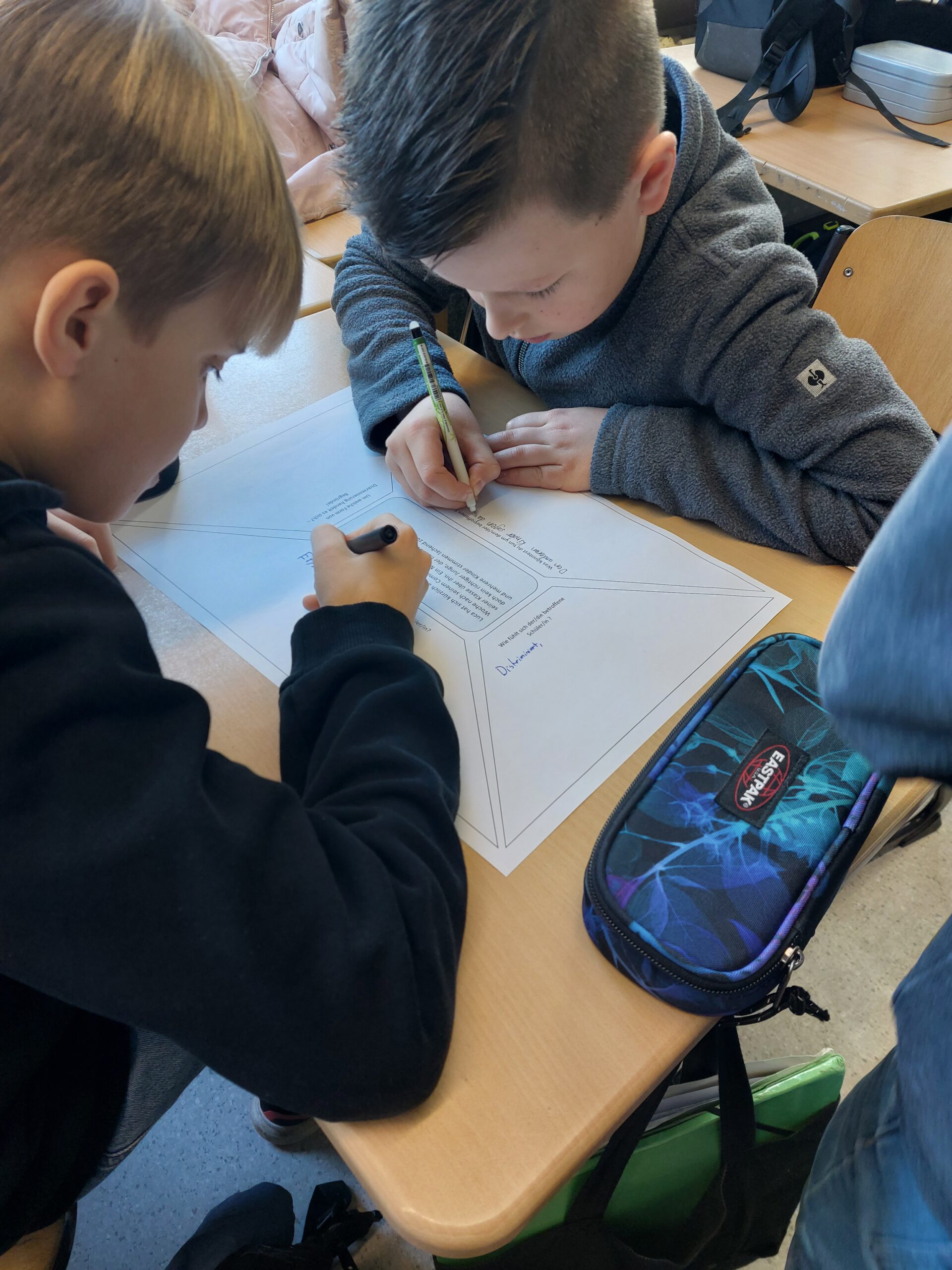 Franziska Borgolte, als ehemalige Schülerin unserer Schule, und ihre Kollege Wulf Wendt sind in der Antidiskriminierungsstelle des Caritasverbands e. V. im Kreis Höxter tätig. Im Rahmen dieser Tätigkeit haben sie unsere 5. Klassen der Realschule und des Gymnasiums besucht und die Schüler/innen über Vorurteile und diskriminierendes Verhalten aufgeklärt. Im Rahmen eines Schreibgesprächs konnten die Lernenden anhand der Beispiele selbst überlegen und aufschreiben, wie es den Betroffenen geht, um welche Form von Diskriminierung es sich handeln könnte und wie sie selbst helfen könnten. „Auch schon im Kleinen können wir etwas tun“ – war das Fazit aus den Einheiten!