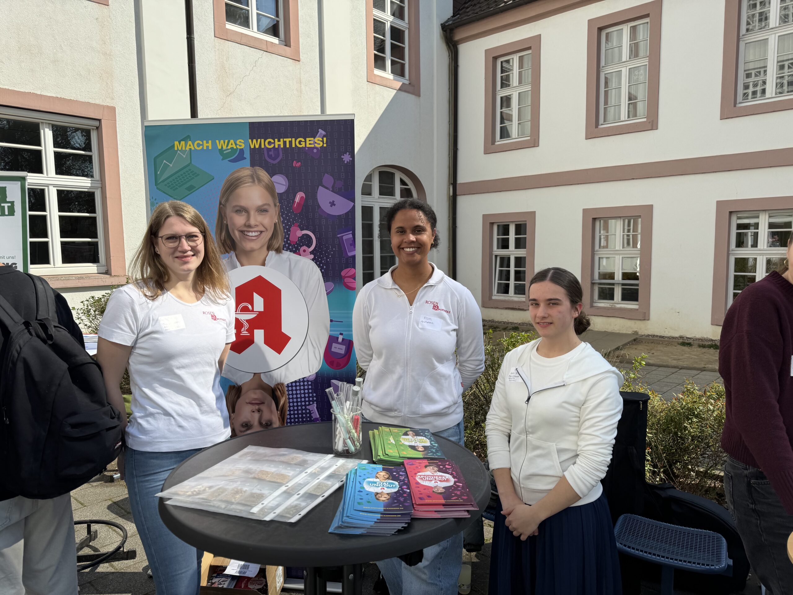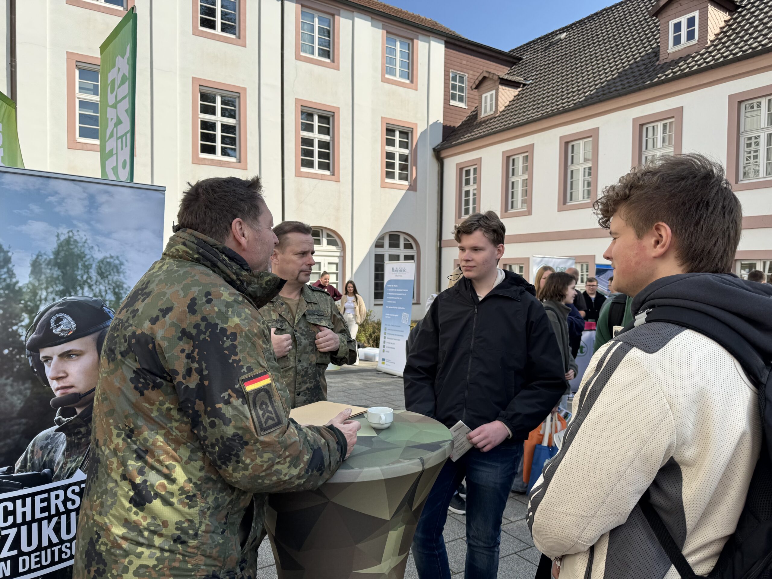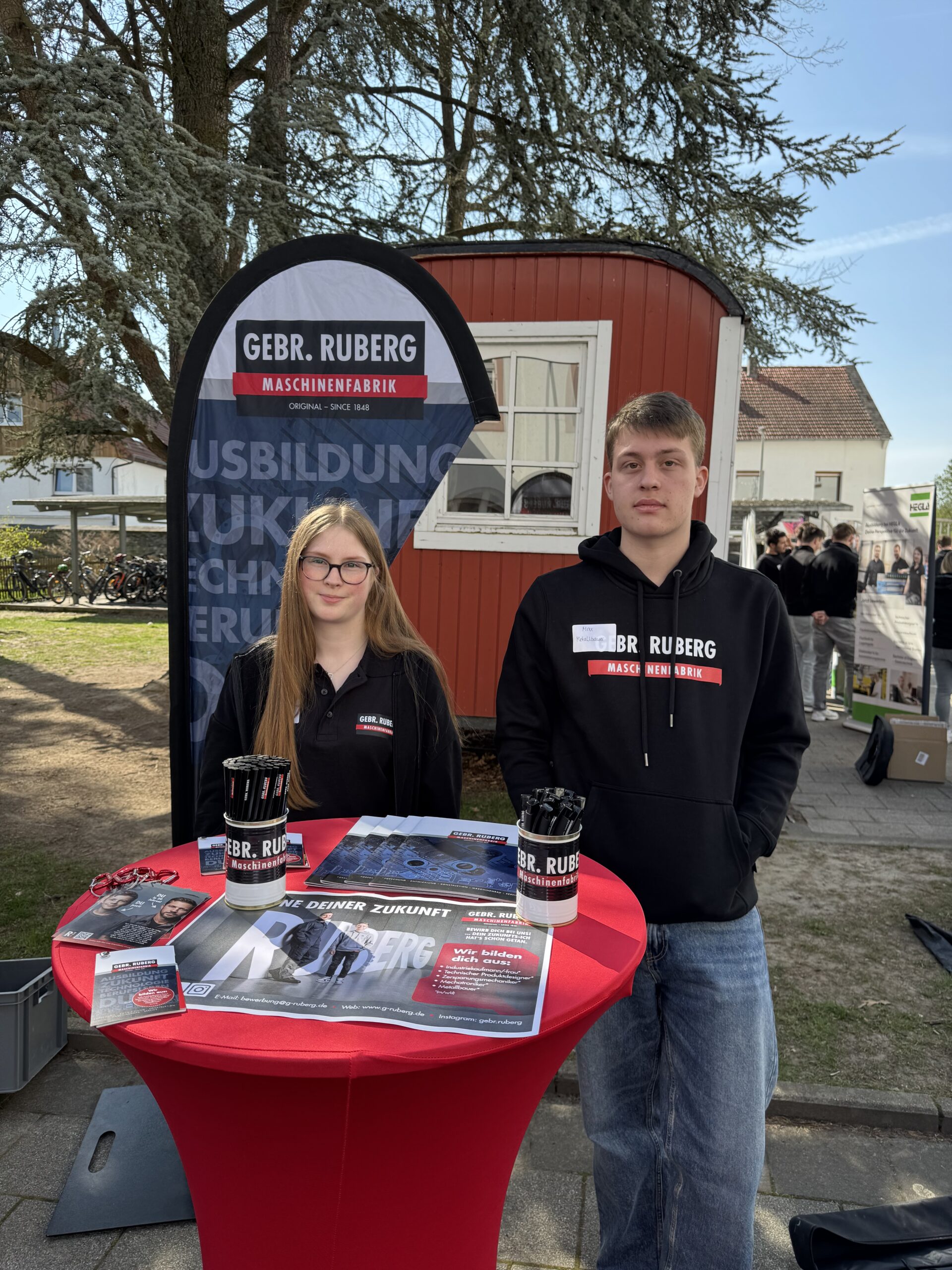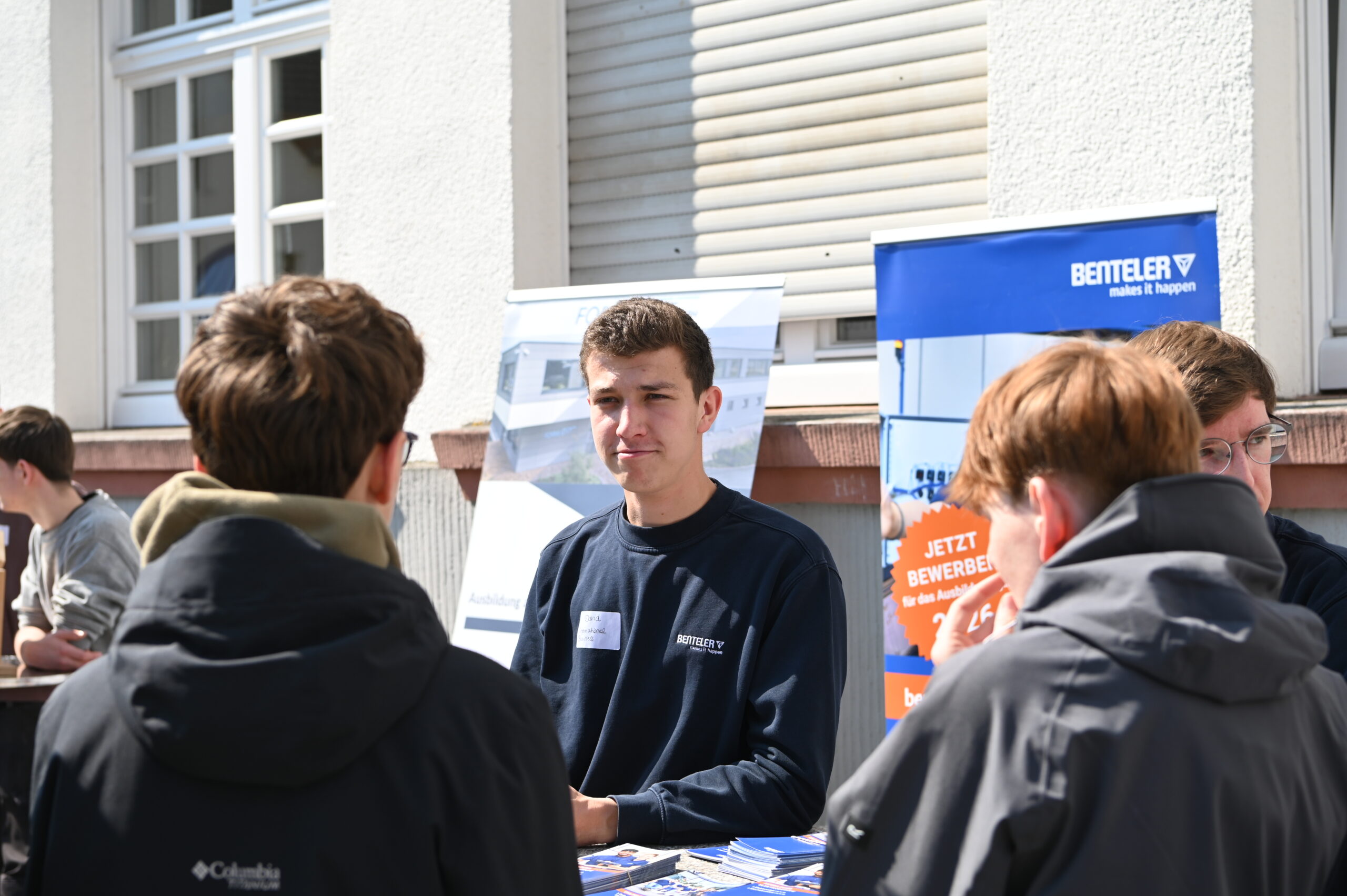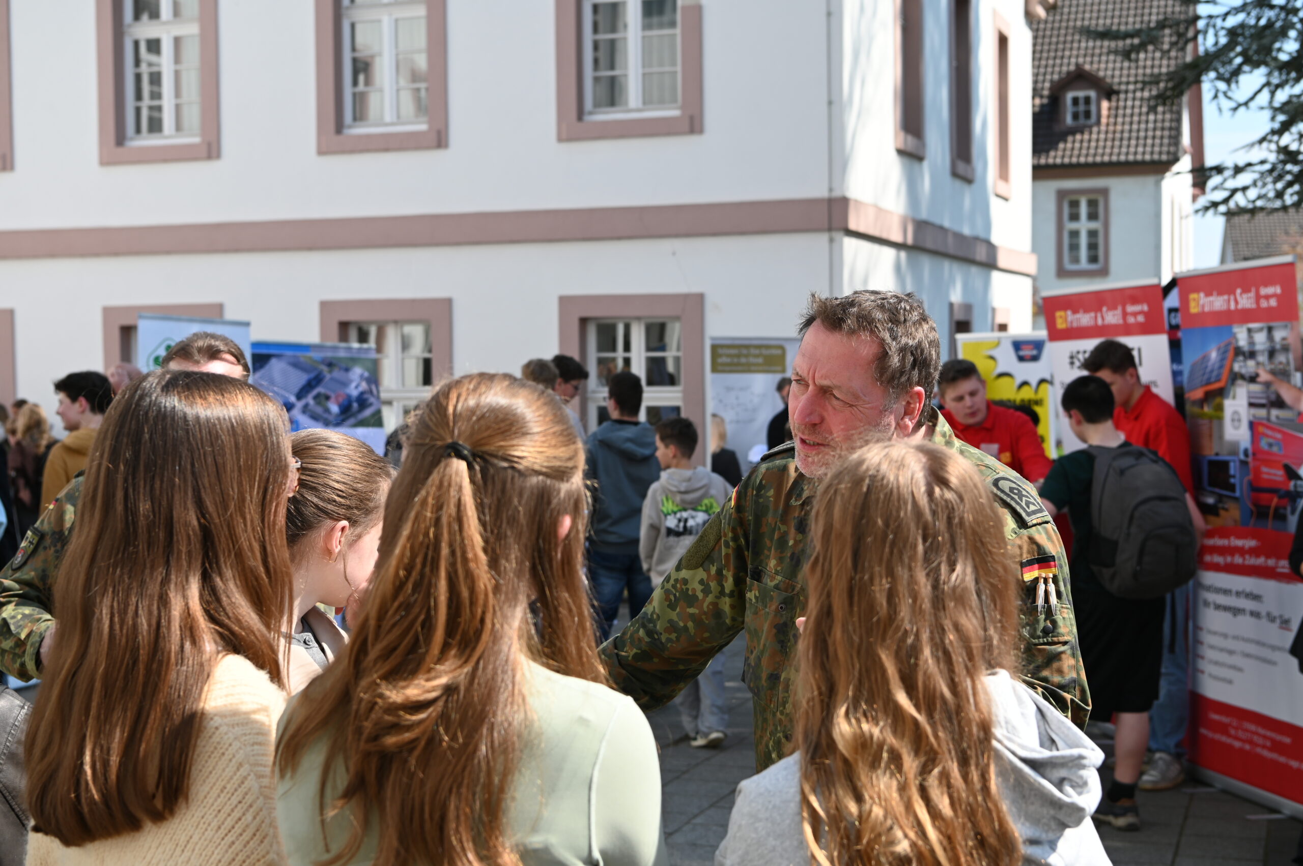 Nach einer kurzen Begrüßung durch den Schulleiter Herrn Dr. Koch präsentierten sich fast 50 Unternehmen und Einrichtungen aus der Region den Schülerinnen und Schülern nicht etwa in sterilen Messehallen, sondern ganz direkt auf dem Schulhof – mitten im gewohnten Umfeld der Jugendlichen. Diese ungezwungene Atmosphäre sorgte für ehrliche Gespräche, neugierige Fragen und zahlreiche Aha-Momente.