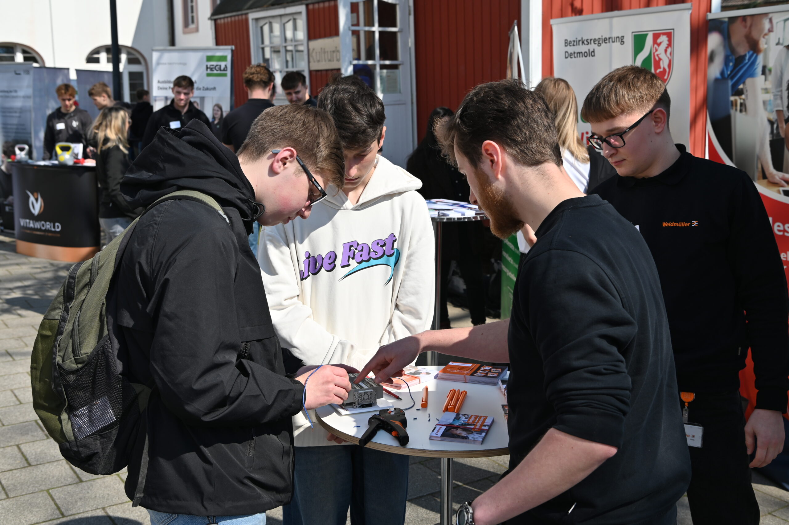 Organisiert von Frau Grundke von der IHK in Zusammenarbeit mit der Abteilung Bildung und Integration – Übergang Schule und Beruf – des Kreises Höxter sowie den engagierten Studien- und Berufswahlkoordinatoren der Brede – Herrn Johlen, Herrn Schwämmle, Frau Lüttig, Frau Frischemeier und Frau Dommes – wurde die Schulhofaktion zu einem vollen Erfolg.