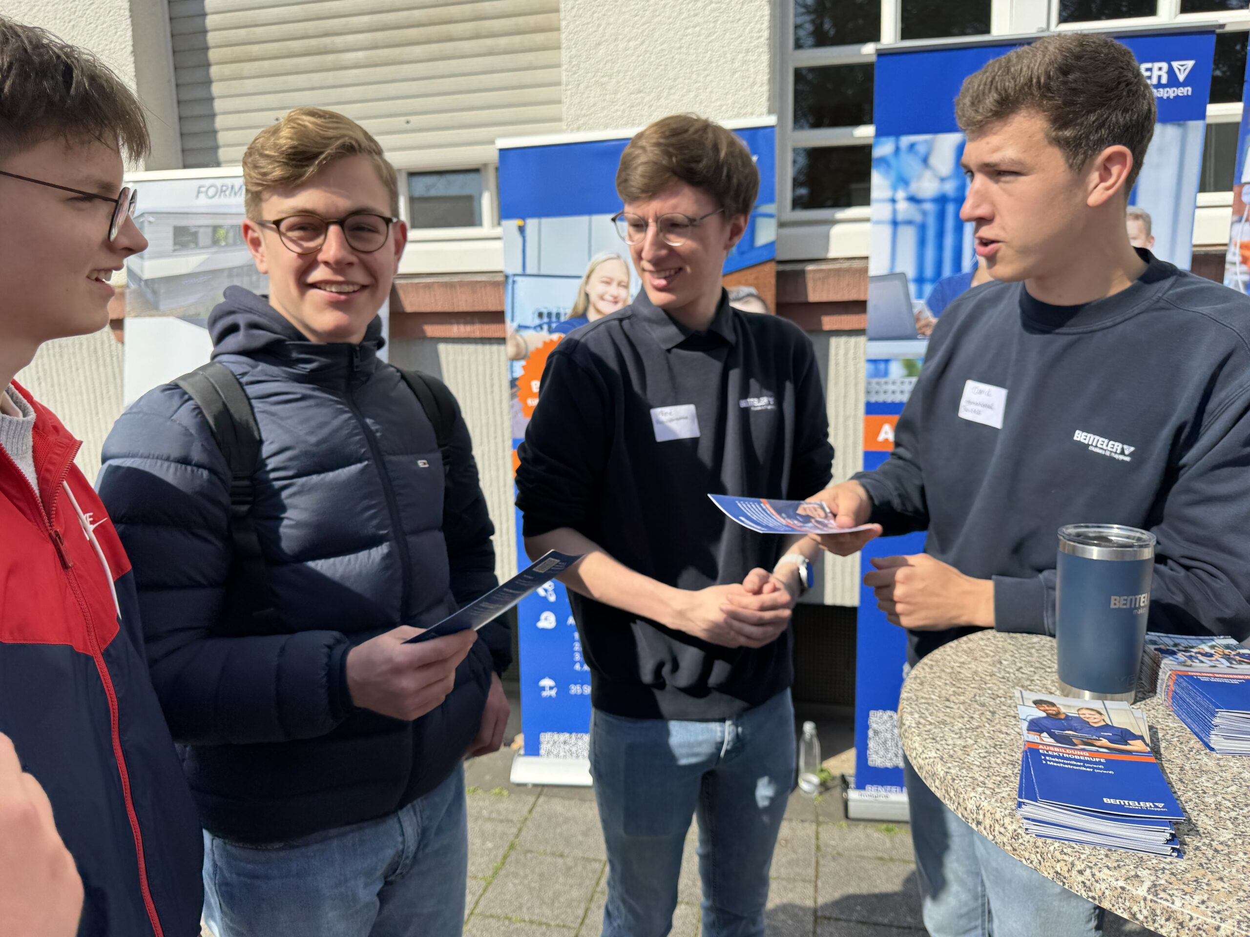 Besonders hervorzuheben ist dabei das großartige Verhalten der Schülerinnen und Schüler: Offen, interessiert und bestens vorbereitet gingen sie auf die Unternehmen zu. Kein Zufall – denn im Vorfeld hatten die StuBos der Schule die Eltern und Jugendlichen gezielt informiert und dazu ermutigt, sich gemeinsam mit den teilnehmenden Betrieben auseinanderzusetzen und Gespräche aktiv zu suchen. Dieser Impuls zeigte Wirkung: Viele Schülerinnen und Schüler traten selbstbewusst in den Austausch, stellten konkrete Fragen und nutzten die Gelegenheit, erste Kontakte für ihre berufliche Zukunft zu knüpfen.